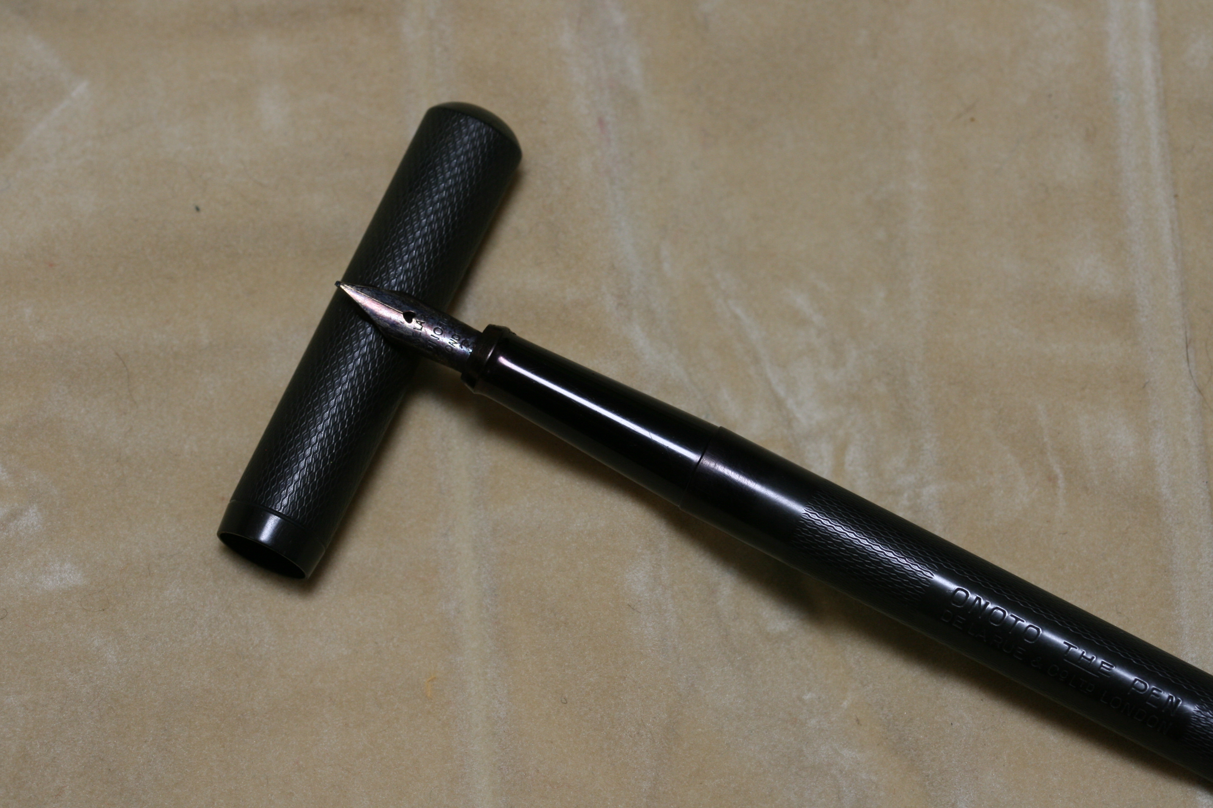 The Onoto THE Pen, as it is marked, is an unusual pen that uses a plunger to refill. The end is unscrewed and pulled out, as it is pushed back in it fills the pen. It also has a lock on the ink reservoir so you need to unscrew the end a half turn to write. W